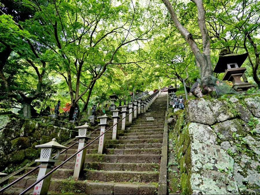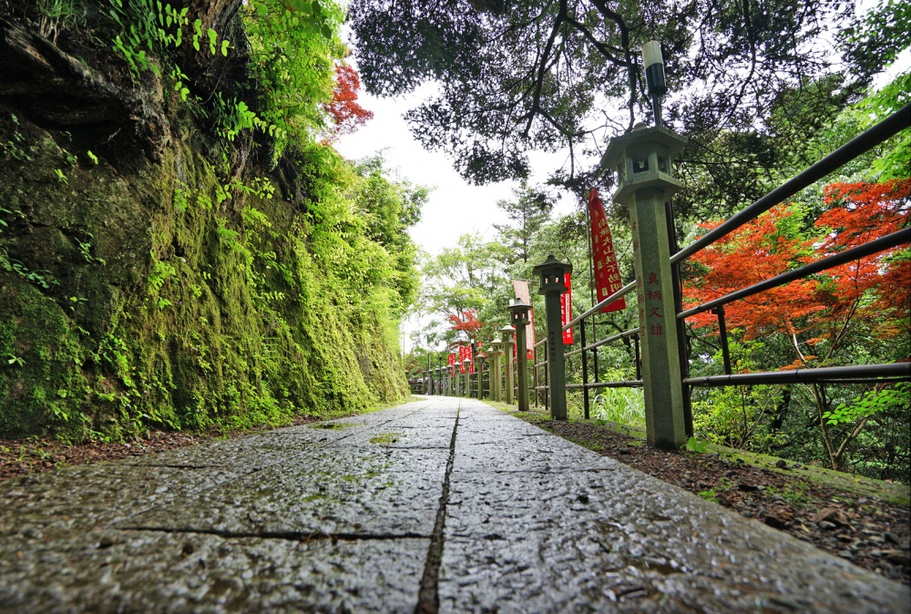 参道 御影石平板敷(以前の参道は雨が降るとぬかるみ歩きづらくなってしまうので、お寺様の配慮により、石敷きとしました)